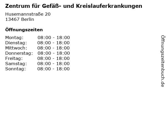 Öffnungszeiten Zentrum für Gefäß- und Kreislauferkrankungen in Berlin anzeigen | |