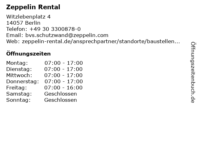 | Öffnungszeiten Zeppelin Rental in Berlin anzeigen | |