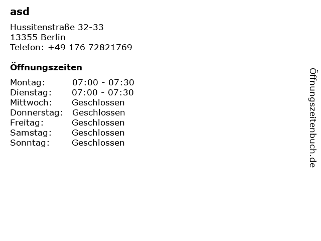 | Öffnungszeiten asd in Berlin anzeigen | |