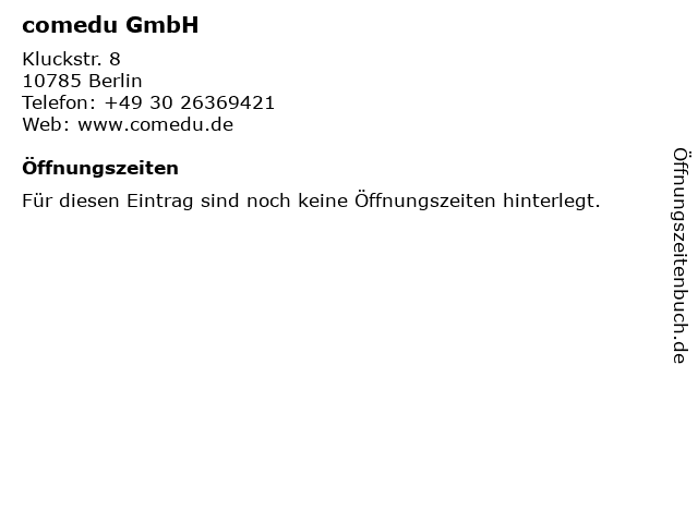 | Öffnungszeiten comedu GmbH in Berlin anzeigen | |