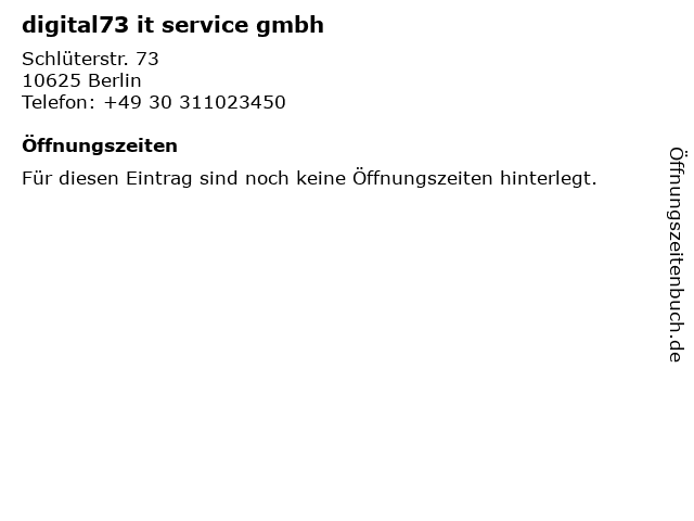| Öffnungszeiten digital73 it service gmbh in Berlin anzeigen | |