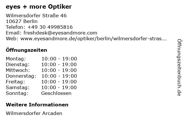| Öffnungszeiten eyes + more Optiker in Berlin anzeigen | |