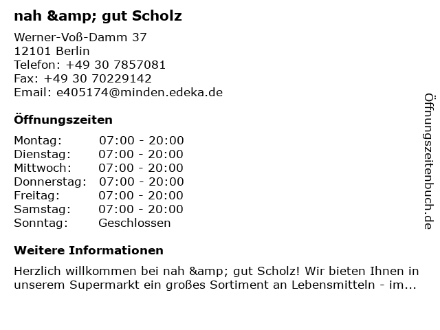 | Öffnungszeiten nah & gut Scholz in Berlin anzeigen | |