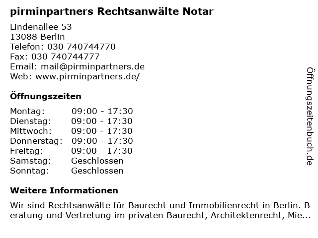 5 Legal Skills Rechtsanwälte, Fachanwälte, Notar (Entfernung: 3,93 km) Karl-Marx-Allee 90 A, 10243 Berlin 6 |