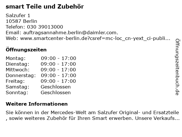 | Öffnungszeiten smart Teile und Zubehör in Berlin anzeigen | |
