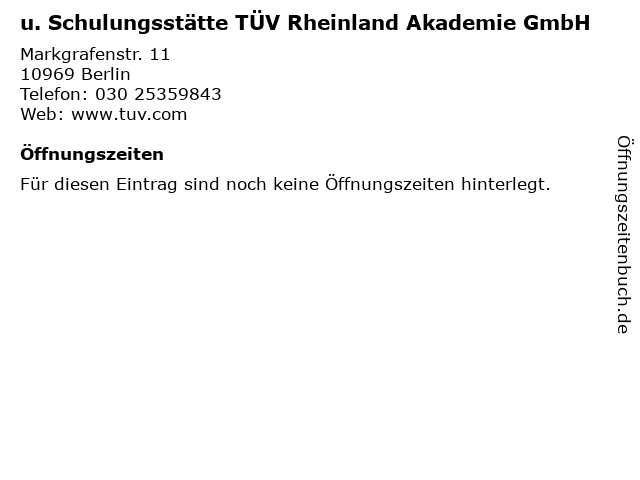 | u. Schulungsstätte TÜV Rheinland Akademie GmbH anrufen | |