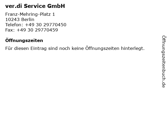 | Öffnungszeiten ver.di Service GmbH in Berlin anzeigen | |