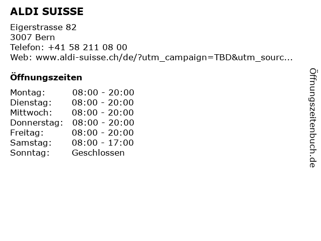ALDI SUISSE in Bern | Telefonnummer, Öffnungszeiten und Adresse