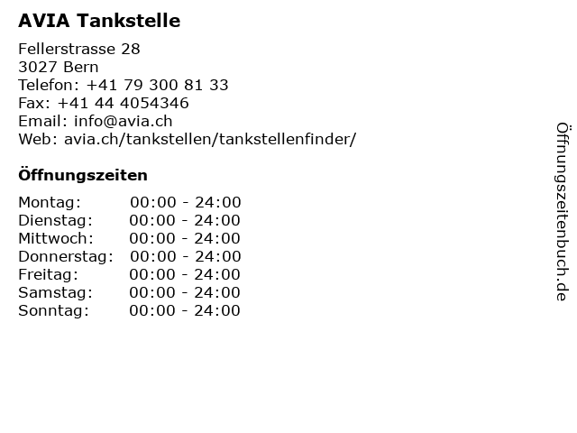 | Öffnungszeiten AVIA Tankstelle in Bern anzeigen | |