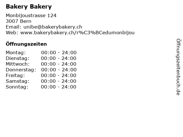 | Öffnungszeiten Bakery Bakery in Bern anzeigen | |