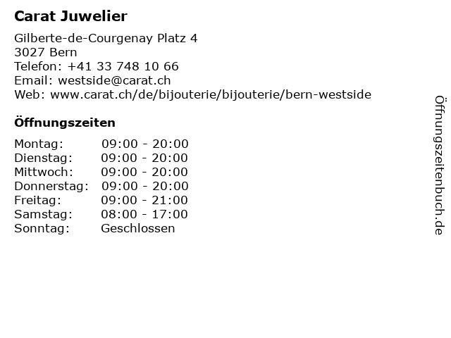 | Öffnungszeiten Carat Juwelier in Bern anzeigen | |