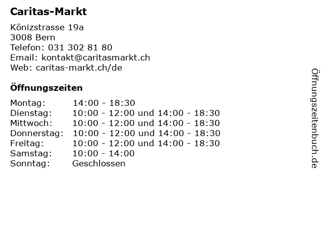 | Öffnungszeiten Caritas-Markt in Bern anzeigen | |