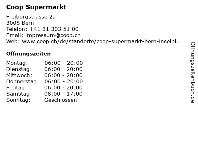 | Öffnungszeiten Coop Supermarkt in Bern anzeigen | |