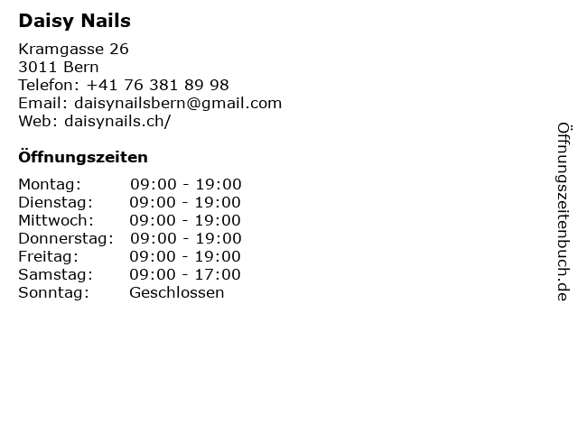 | Öffnungszeiten Daisy Nails in Bern anzeigen | |