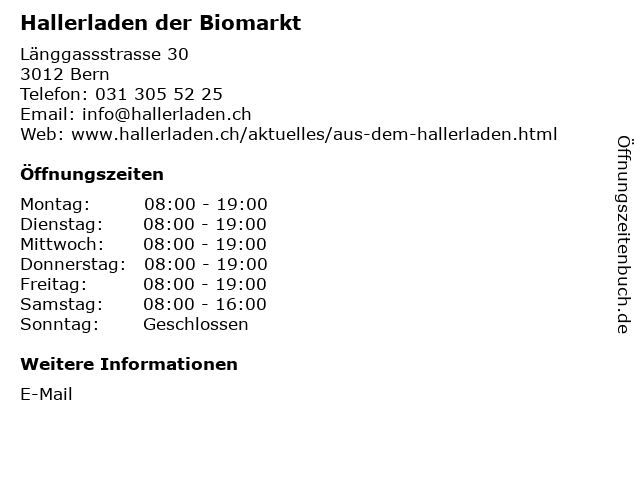 | Öffnungszeiten Hallerladen der Biomarkt in Bern anzeigen | |