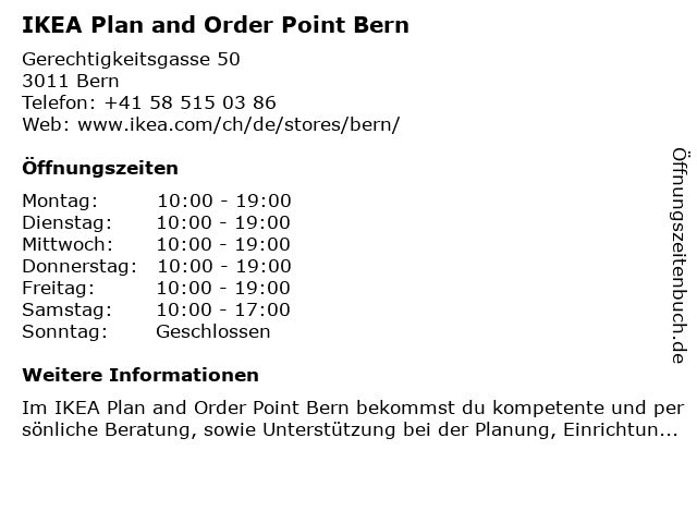 Öffnungszeiten IKEA Plan and Order Point Bern in Bern anzeigen | |