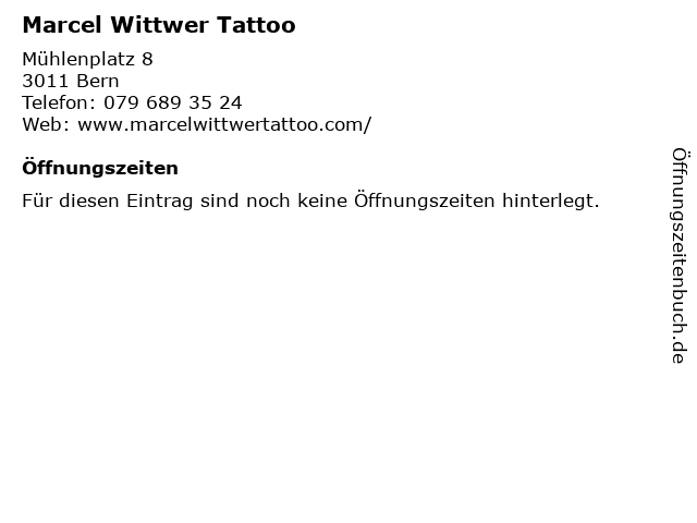 | Öffnungszeiten Marcel Wittwer Tattoo in Bern anzeigen | |