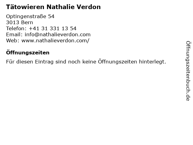 | Öffnungszeiten Tätowieren Nathalie Verdon in Bern anzeigen | |