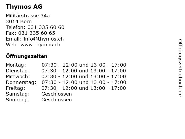 | Öffnungszeiten Thymos AG in Bern anzeigen | |