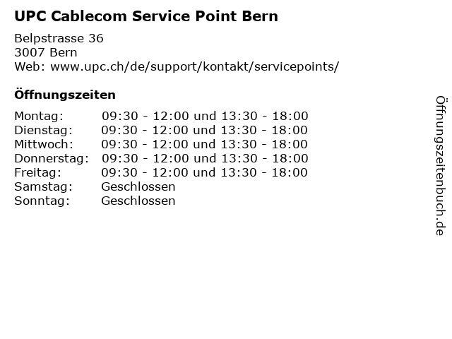 | Öffnungszeiten UPC Cablecom Service Point Bern in Bern anzeigen | |