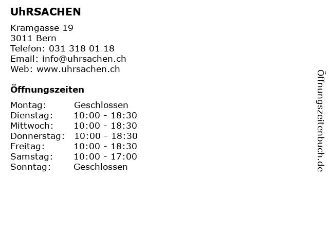 | Öffnungszeiten UhRSACHEN in Bern anzeigen | |
