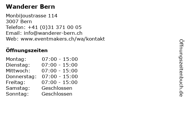 | Öffnungszeiten Wanderer Bern in Bern anzeigen | |