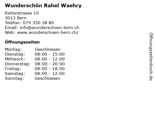 | Öffnungszeiten Wunderschön Rahel Waehry in Bern anzeigen | |