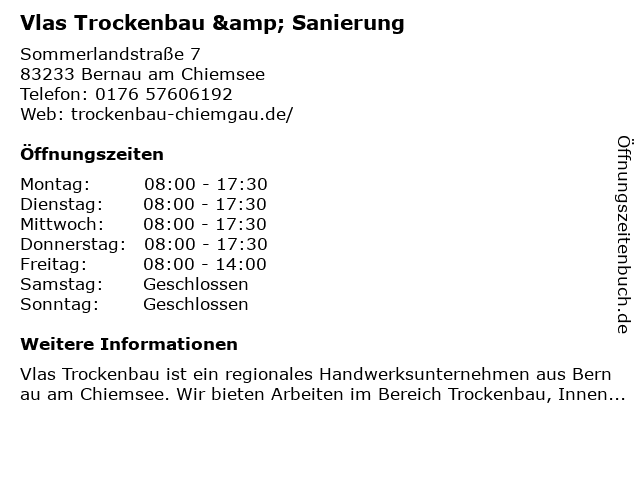 1 Richard Linhuber Fussbodenverlegung Verkauf v.Bodenbeläge Trockenbau (Entfernung: 1,97 km) Aschauer Str. 83, 83233 Bernau 6 |