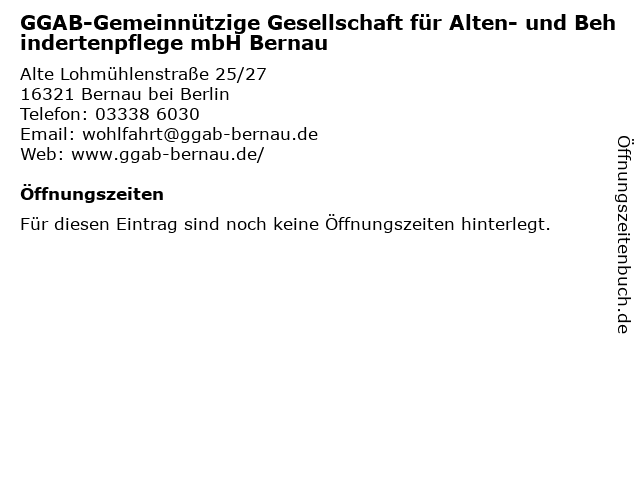 | GGAB-Gemeinnützige Gesellschaft für Alten- und Behindertenpflege mbH Bernau anrufen | |