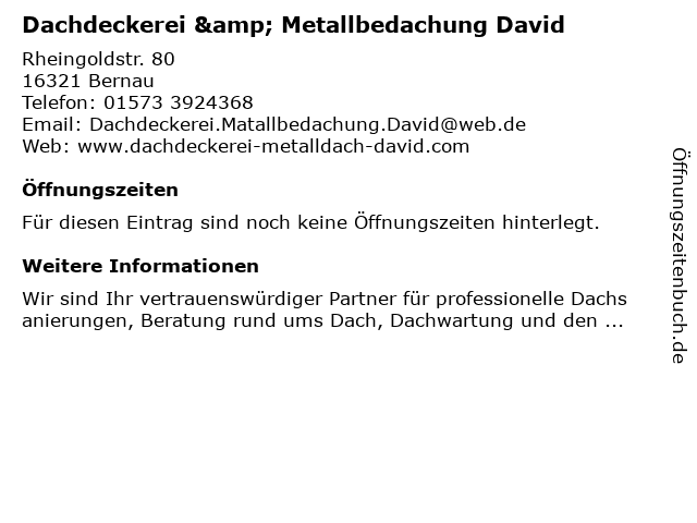 | Dachdeckerei & Metallbedachung David anrufen | |