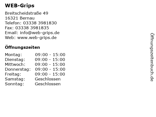 | Öffnungszeiten WEB-Grips in Bernau anzeigen | |