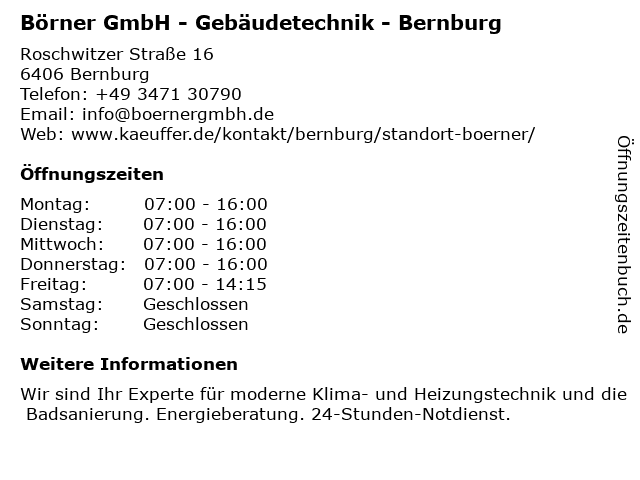Branchen & Suchbegriffe zu Börner GmbH - Gebäudetechnik - Bernburg:24-stunden-notdienst, badsanierung, börner, energieberatung, gasbrennwertheizung, gebäudetechnik, heizungsbau, heizungsreperatur, heizungssanierung, heizungstechnik, heizungswartung, klimaanlage, klimaanlage für zuhause, klimaanlage wartung, klimatechnik, lüftungsanlagen, moderne sanitärtechnik, neue heizung, neues bad, sanitäre anlagen, solarthermie, wärmepumpe |