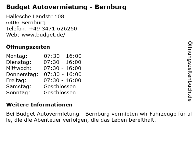 Branchen & Suchbegriffe zu Budget Autovermietung - Bernburg:7-sitzer mieten, auto langzeitmiete, auto mieten, autovermietung, budget, mietwagen, transporter mieten  |