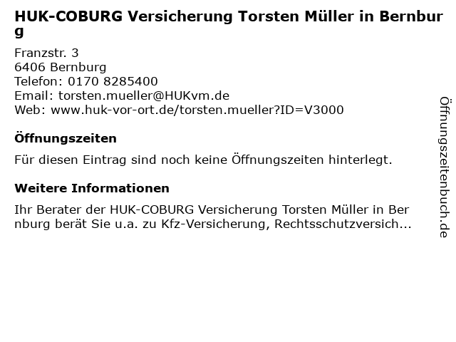 | HUK-COBURG Versicherung Torsten Müller in Bernburg anrufen | |