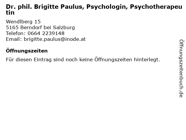 Branchen & Suchbegriffe zu Dr. phil. Brigitte Paulus, Psychologin, Psychotherapeutin:brigitte, dr., paulus, phil., psychologin, psychotherapeutin |