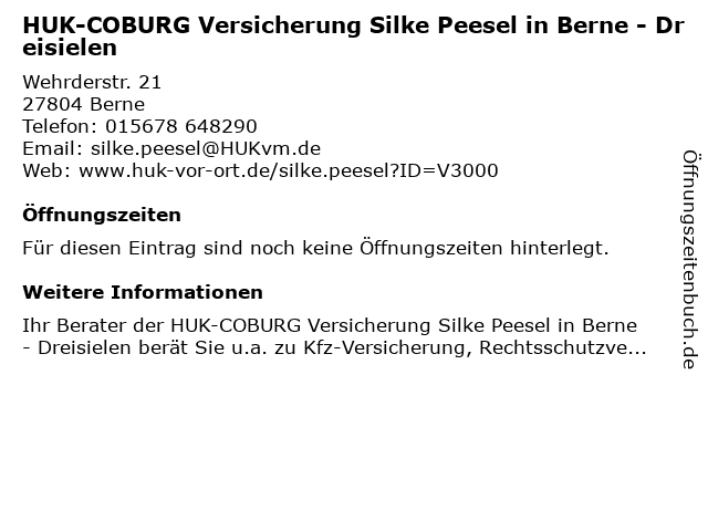 | HUK-COBURG Versicherung Silke Peesel in Berne - Dreisielen anrufen | |