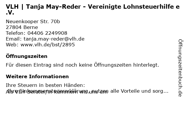 | VLH | Tanja May-Reder - Vereinigte Lohnsteuerhilfe e.V. anrufen | |
