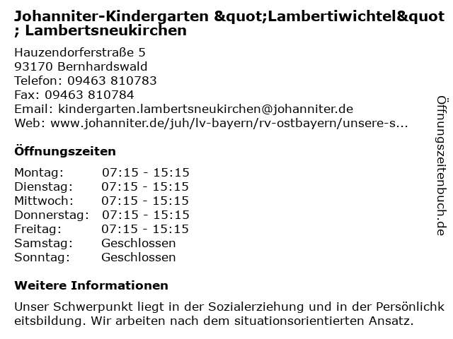 Branchen & Suchbegriffe zu Johanniter-Kindergarten "Lambertiwichtel" Lambertsneukirchen:"lambertiwichtel", agentur für kinderbetreuung, gemeinnützige organisation, hilfsorganisation, johanniter, kindergarten, lambertsneukirchen, sozialarbeit, verband, wohlfahrtseinrichtung |