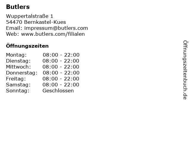 | Öffnungszeiten Butlers in Bernkastel-Kues anzeigen | |