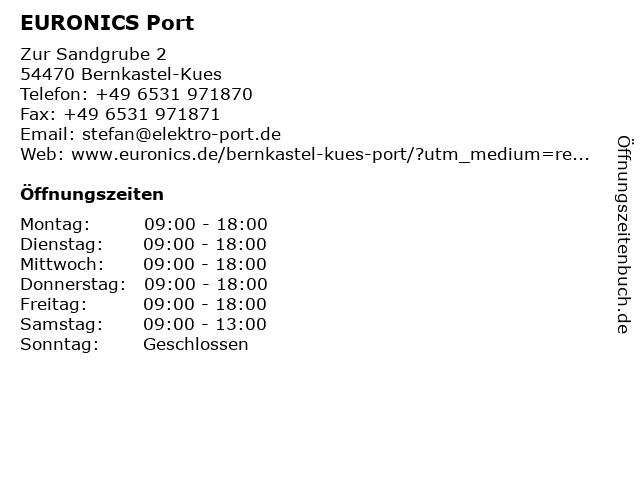 | Öffnungszeiten EURONICS Port in Bernkastel-Kues anzeigen | |