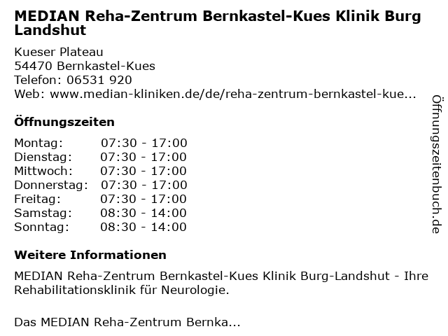 Branchen & Suchbegriffe zu MEDIAN Reha-Zentrum Bernkastel-Kues Klinik Burg Landshut:burg, klinik, kues, median, reha, zentrum |