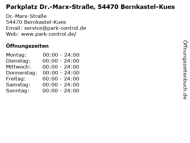 | Öffnungszeiten Parkplatz Dr.-Marx-Straße, 54470 Bernkastel-Kues in Bernkastel-Kues anzeigen | |