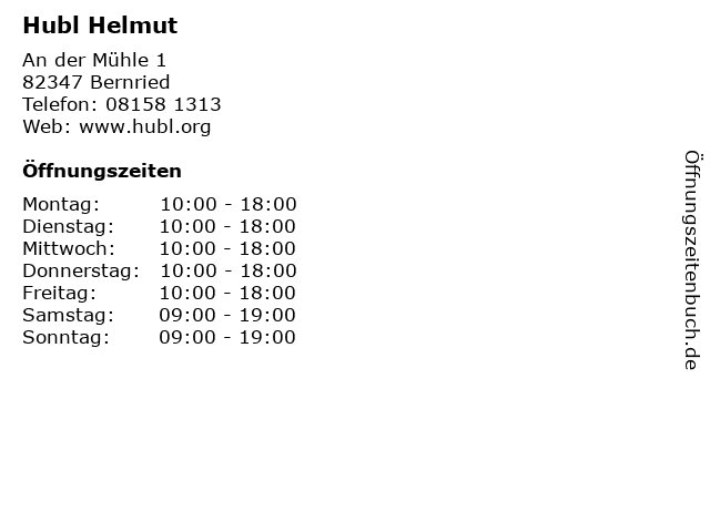 | Öffnungszeiten Hubl Helmut in Bernried anzeigen | |