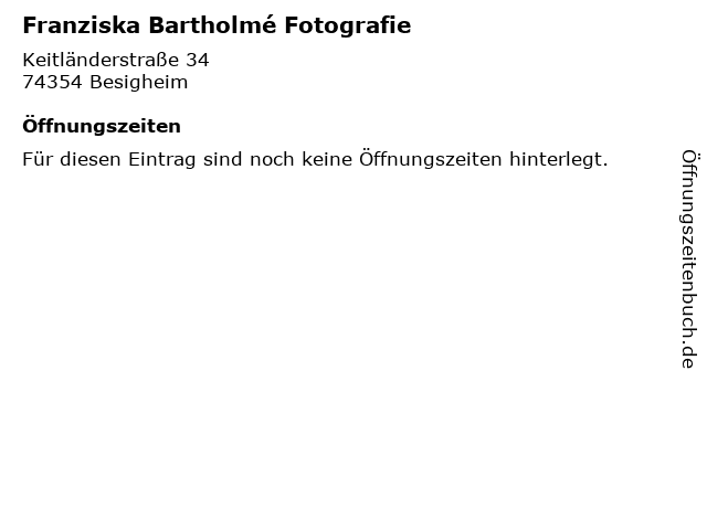 Öffnungszeiten Franziska Bartholmé Fotografie in Besigheim anzeigen | |