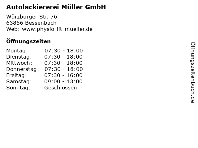| Öffnungszeiten Autolackiererei Müller GmbH in Bessenbach anzeigen | |