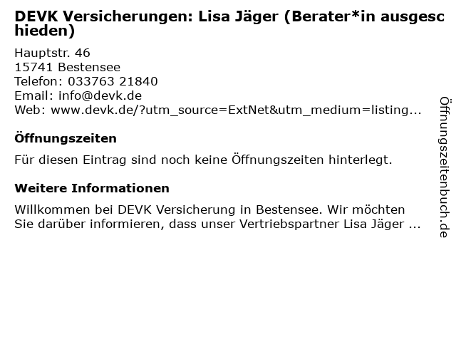 | DEVK Versicherungen: Lisa Jäger (Berater*in ausgeschieden) anrufen | |