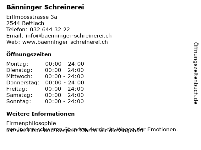| Öffnungszeiten Bänninger Schreinerei in Bettlach anzeigen | |