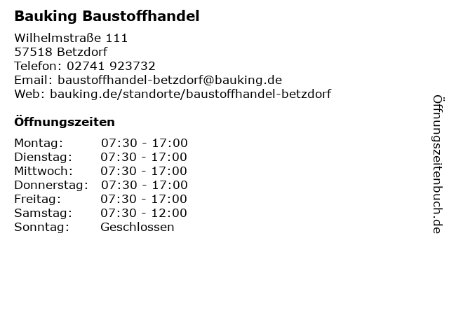 | Öffnungszeiten Bauking Baustoffhandel in Betzdorf anzeigen | |