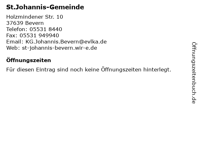 | Öffnungszeiten St.Johannis-Gemeinde in Bevern anzeigen | |