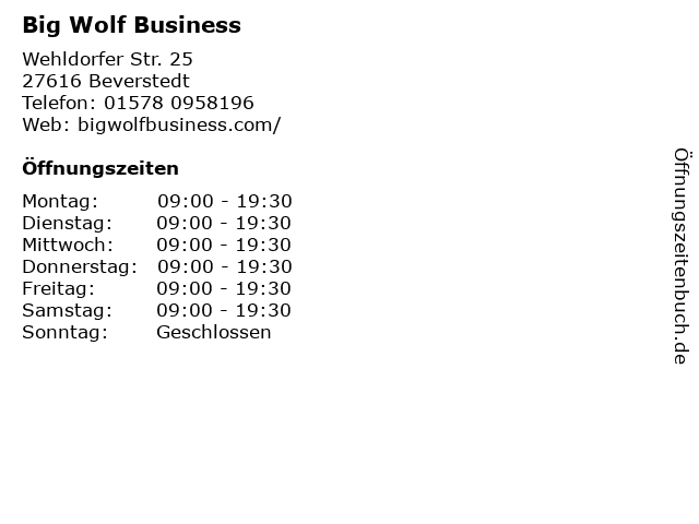| Öffnungszeiten Big Wolf Business in Beverstedt anzeigen | |